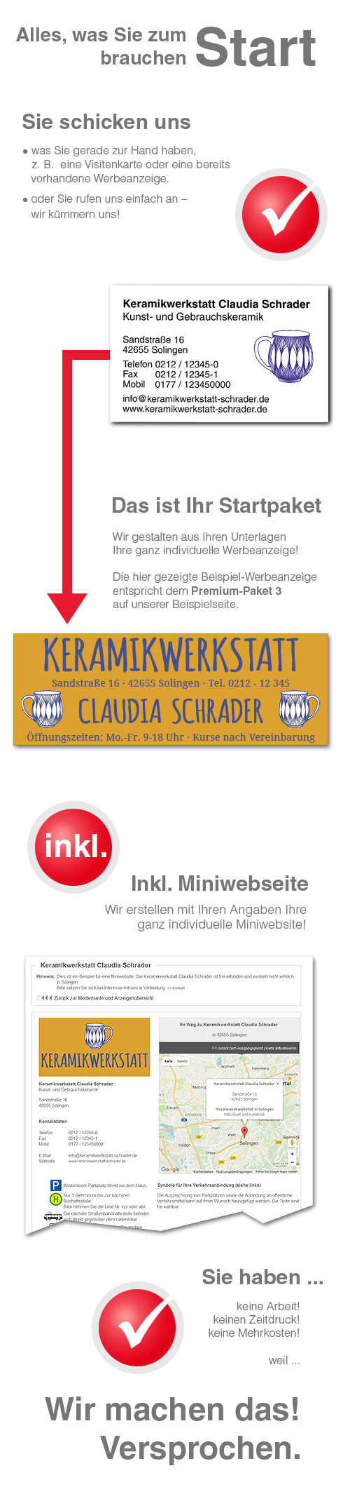 Unser Angebot beinhaltet eine Präsentation mit Ihrer individuell gestalteten Anzeige (z. B. Premium-Paket 3):